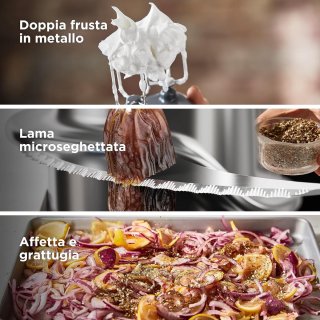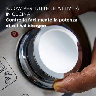 - Krachtig en controleerbaar: de 1000 W motor met instelbare snelheden en pulsfunctie geeft je volledige controle over hakken, mengen en kneden.
