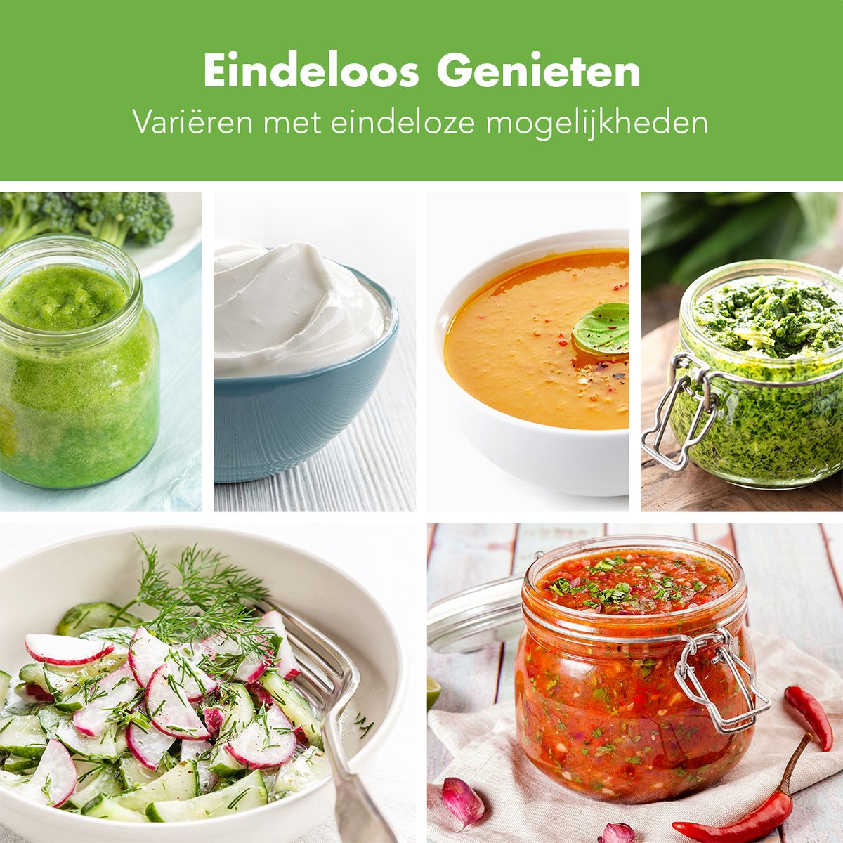 Creëer in een handomdraai heerlijke soepen, sauzen of verfrissende smoothies. De krachtige 1-liter blenderkan is ideaal voor de dagelijkse maaltijd of een gezonde snack. Wil je nog sneller klaar zijn? Plaats gewoon de 0,6-liter smoothiefles op het mes van de blender en geniet direct van je zelfgemaakte drankje, klaar om mee te nemen. Ideaal voor drukke ochtenden en sportieve middagen!