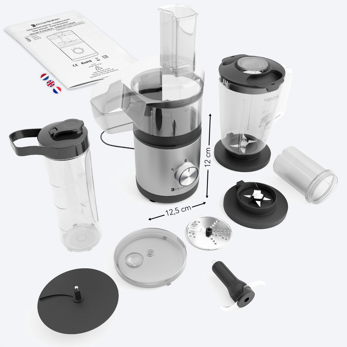 Met de KitchenBrothers Multifunctionele Foodprocessor haal je een krachtig, veelzijdig en gebruiksvriendelijk apparaat in huis. Of je nu wilt hakken, malen, snijden of blenderen, alles gebeurt snel en simpel. Upgrade je keuken en geniet van de kwaliteit en het gemak dat dit apparaat biedt!