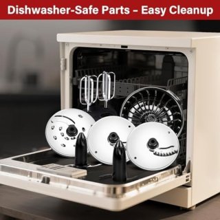 - Eenvoudig reinigen — veel onderdelen zijn vaatwasserbestendig en afneembare messen maken onderhoud snel en hygiënisch.